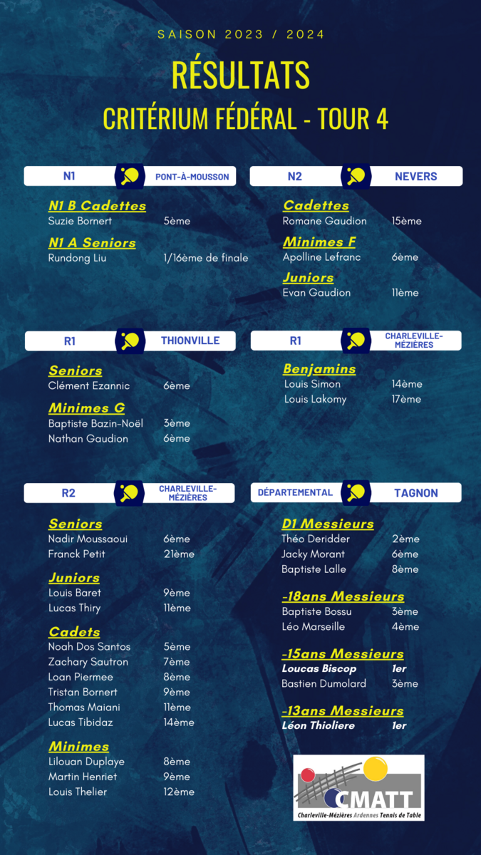 Retrouvez tous les résultats du dernier tour du Critérium Fédéral qui se tenait le week-end dernier...